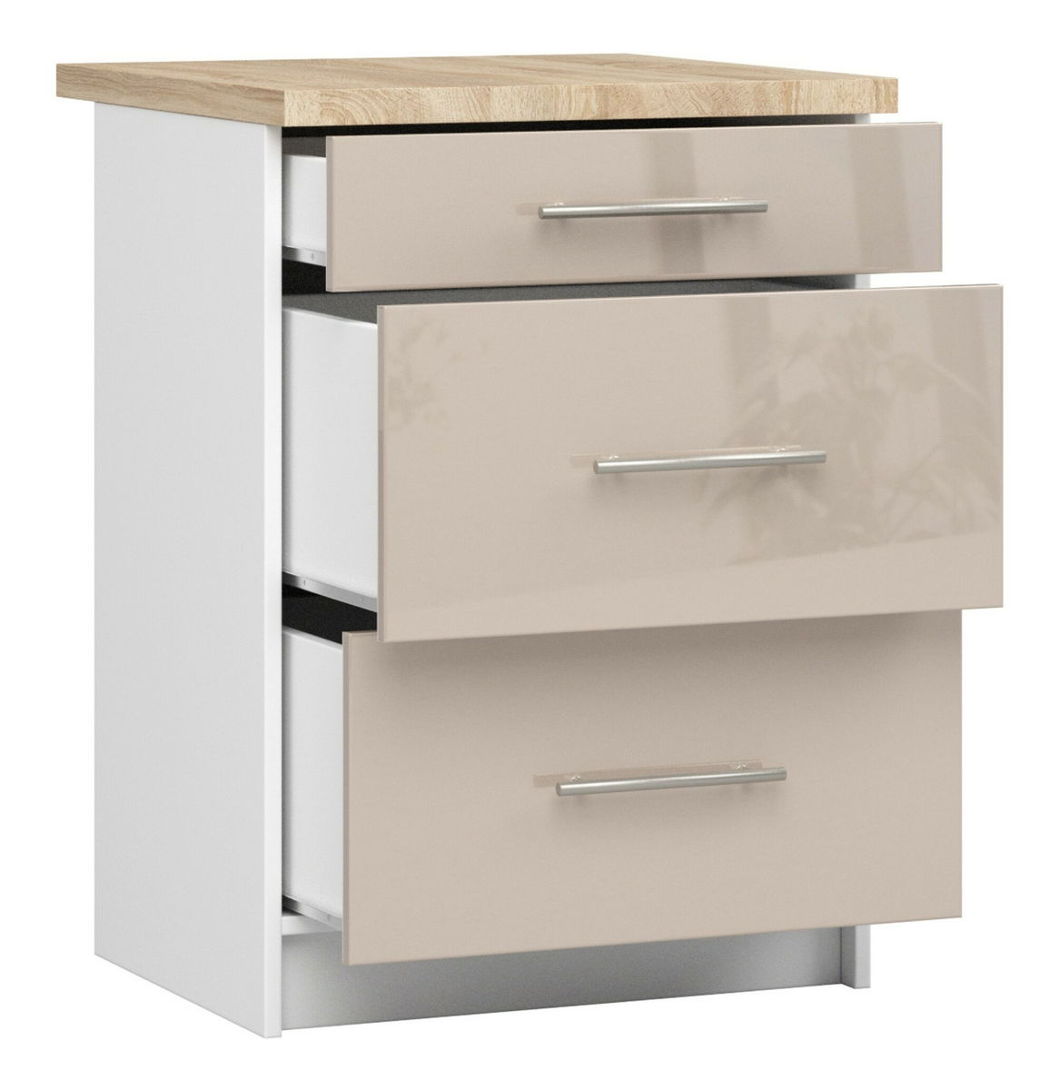 Dolní kuchyňská skříňka Ozara S60 3SZ (bílá + cappuccino lesk)