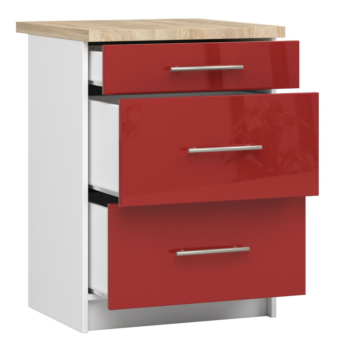 Dolní kuchyňská skříňka Ozara S60 3SZ (bílá + červený lesk)