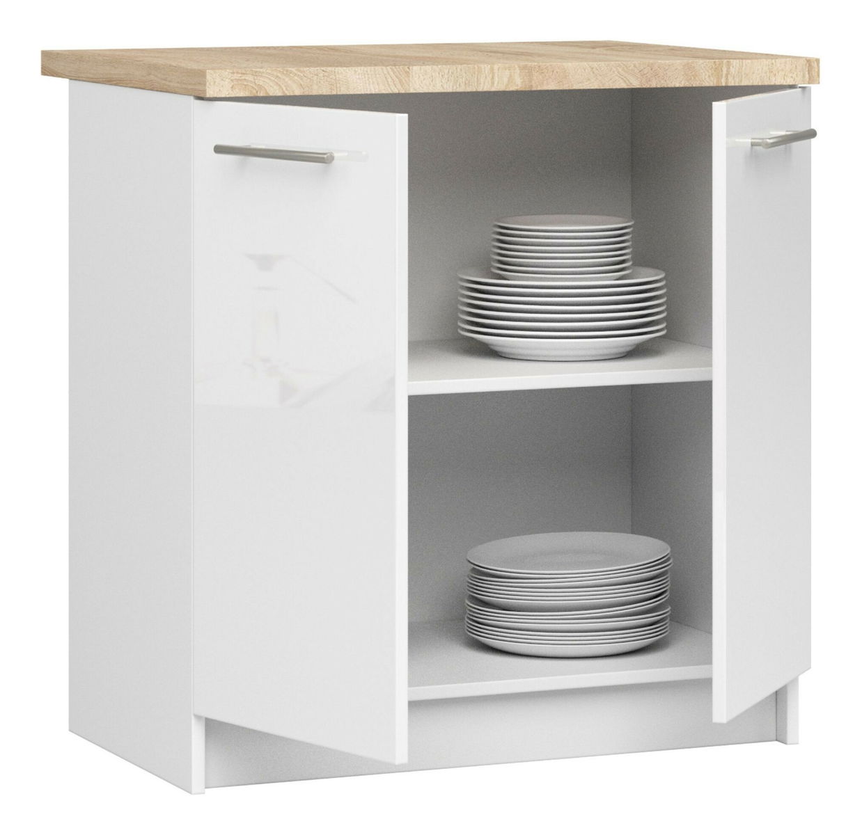 Dolní kuchyňská skříňka Ozara S80 2D (bílá + bílý lesk)