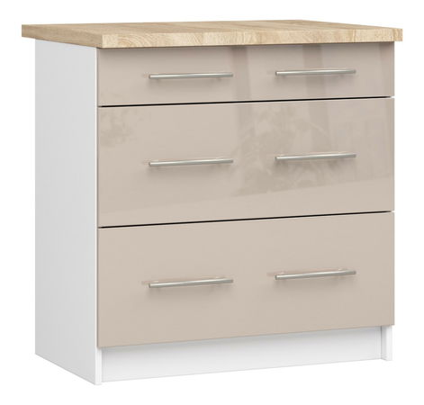 Dolní kuchyňská skříňka Ozara S80 3SZ (bílá + cappuccino lesk)