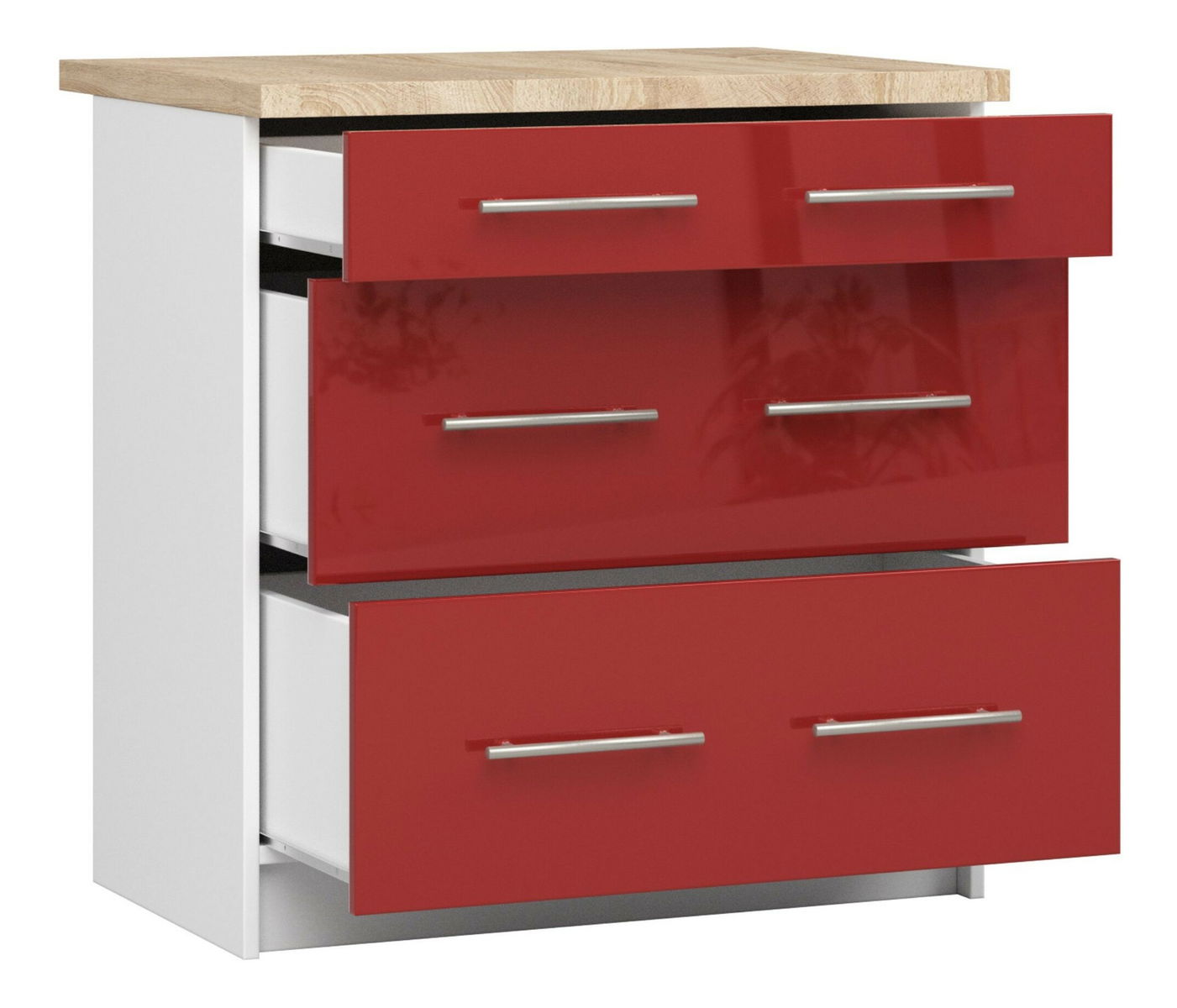 Dolní kuchyňská skříňka Ozara S80 3SZ (bílá + červený lesk)