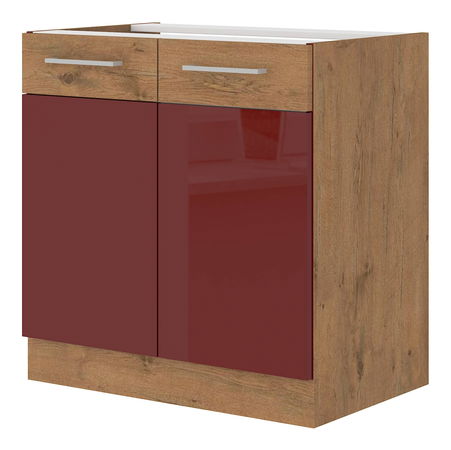 Dolní kuchyňská skříňka pod dřez Virion 80 ZL 2F BB (dub lancelot + bordó)