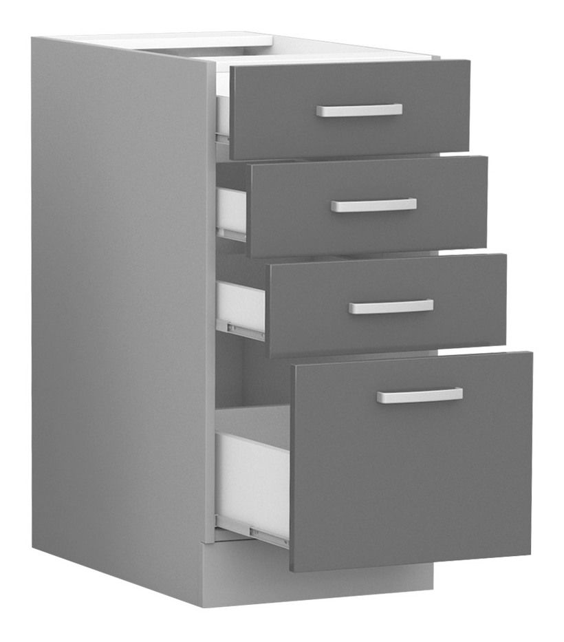 Dolní kuchyňská skříňka se zásuvkami Metaluna 40 D 4S BB (šedá + lesk šedý)