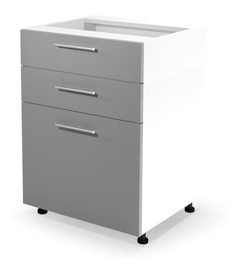 Dolní kuchyňská skříňka Verlene v šedé a bílé barvě je vyrobena z laminované dřevotřísky a MDF s vysokým leskem. Její rozměry jsou 82 cm výšky, 60 cm šířky a 52 cm hloubky. bude skvělým doplňkem do každé kuchyně, která potřebuje více úložného prostoru a moderního vzhledu.