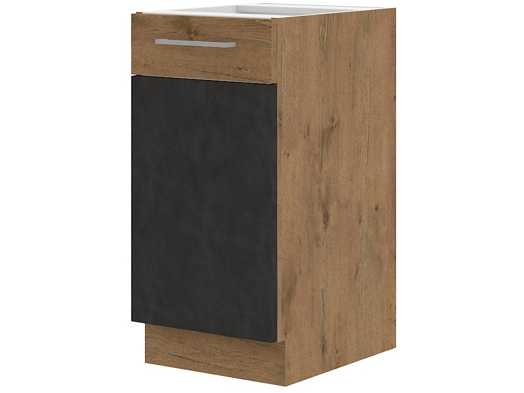 Dolní kuchyňská skříňka Virion 40 D 1F BB je moderní skříň s výklopnými dvířky, vyrobená z kvalitního materiálu - dřevotříska laminova a MDF. Skříňka má rozměr 82 x 40 x 52 cm a je v barvě dub lancelot + šedá. Vnitřek skříně je bílé barvy a má vyvrtané otvory pro rukojeť. Vyberte si z nabídky dalších variant skříněk a regálů a sestavte si vlastní kuchyňskou sestavu dle vašich preferencí. Pracovní deska není součástí balení, ale naleznete ji na naší stránce.