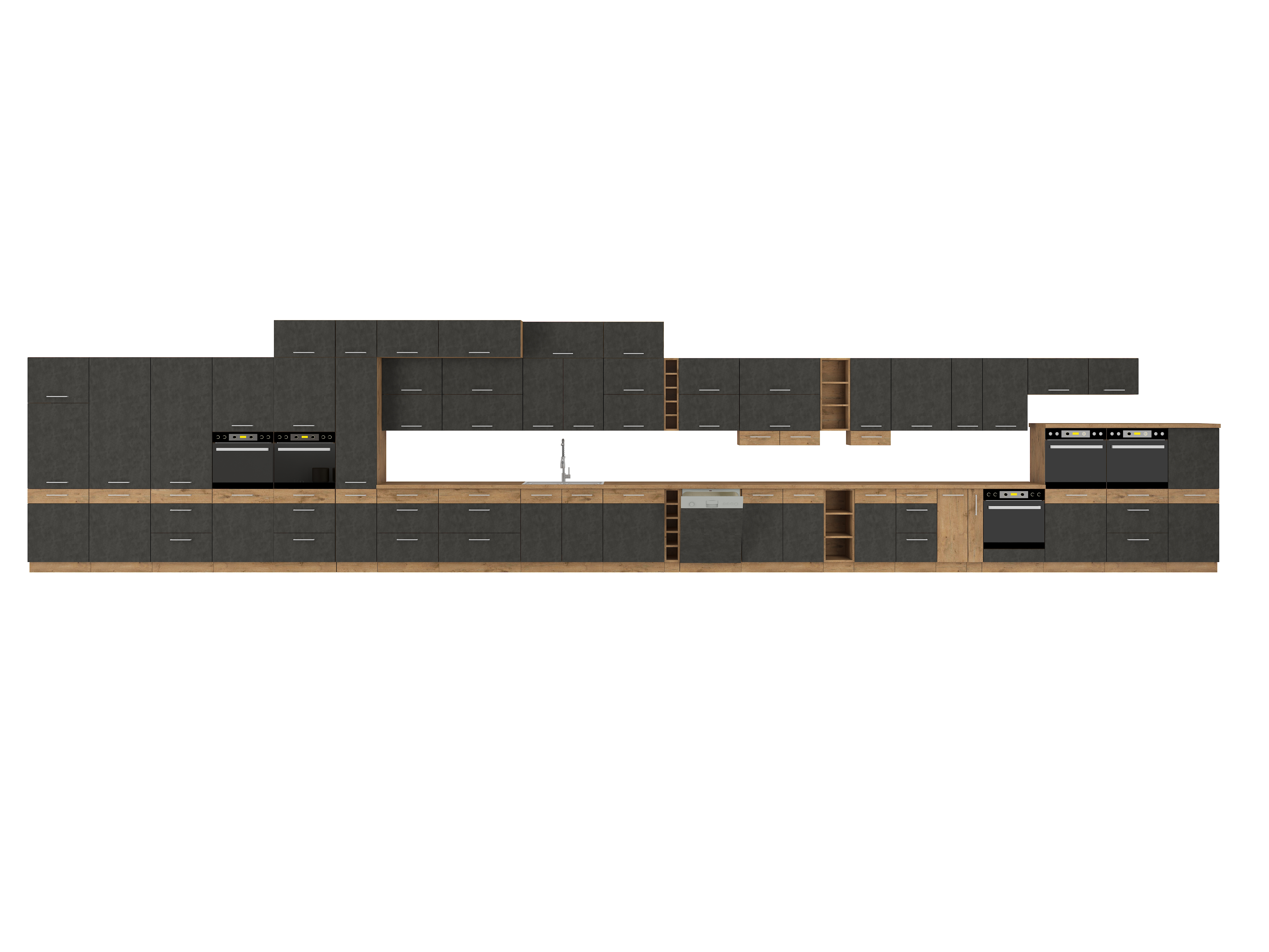 Staňte se pro tuto chvíli architektem a designér vlastní kuchyně. Nabízíme Vám směs designových skříněk v barvě bílá, šedá a bordó v kombinaci dubu Lancelot. Přáli jste si mít troubu v úrovni učí, nebo ji máte rádi v dole. Přáli jste si skříňky s výklopnými dvířky nebo klasicky doprava či doleva. Výběr je na vás a na vaší fantazii.
