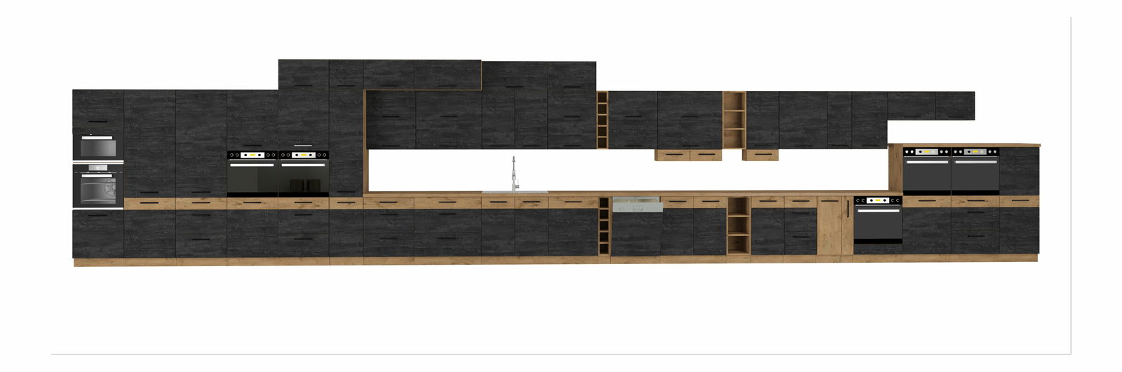 Staňte se pro tuto chvíli architektem a designér vlastní kuchyně. Nabízíme Vám směs designových skříněk v barvě bílá, tmavá, šedá a bordó v kombinaci dubu Lancelot. Výběr je na vás a na vaší fantazii.