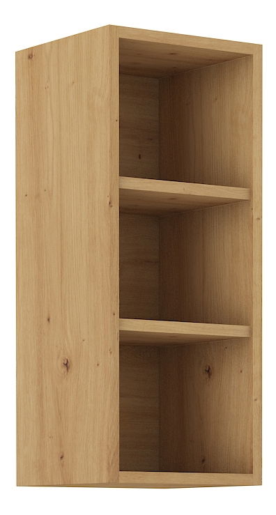 Dolní regál z kuchyňského sektorového systému v moderním stylu, má tři odkládací prostory. Skříňka je univerzální. Poslouží k odložení sklenic, dóz se surovinami, kořenek, případně do ní můžete zakomponovat nějaké dekorace, a tak kuchyni oživit.