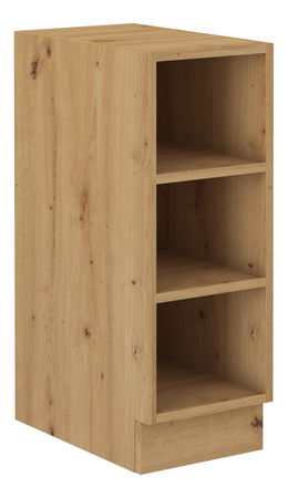 Dolní kuchyňský regál Miraluna (dub artisan) o výšce 82 cm, šířce 30 cm a hloubce 50 cm je ideálním doplňkem do každé kuchyně. Regál je vyroben z kvalitního dřeva dub artisan, které zaručuje nejen pevnost, ale také nadčasový design. Regál disponuje dostatečným množstvím úložného prostoru, který umožní uskladnění kuchyňských potřeb a zároveň přidá charakter vaší kuchyni. Regál je jednoduchý na montáž a díky svým kompaktním rozměrům se hodí i do menších kuchyní. Dolní kuchyňský regál Miraluna je skvělou investicí pro každého, kdo hledá kvalitní a pevné řešení pro svoji kuchyni.
