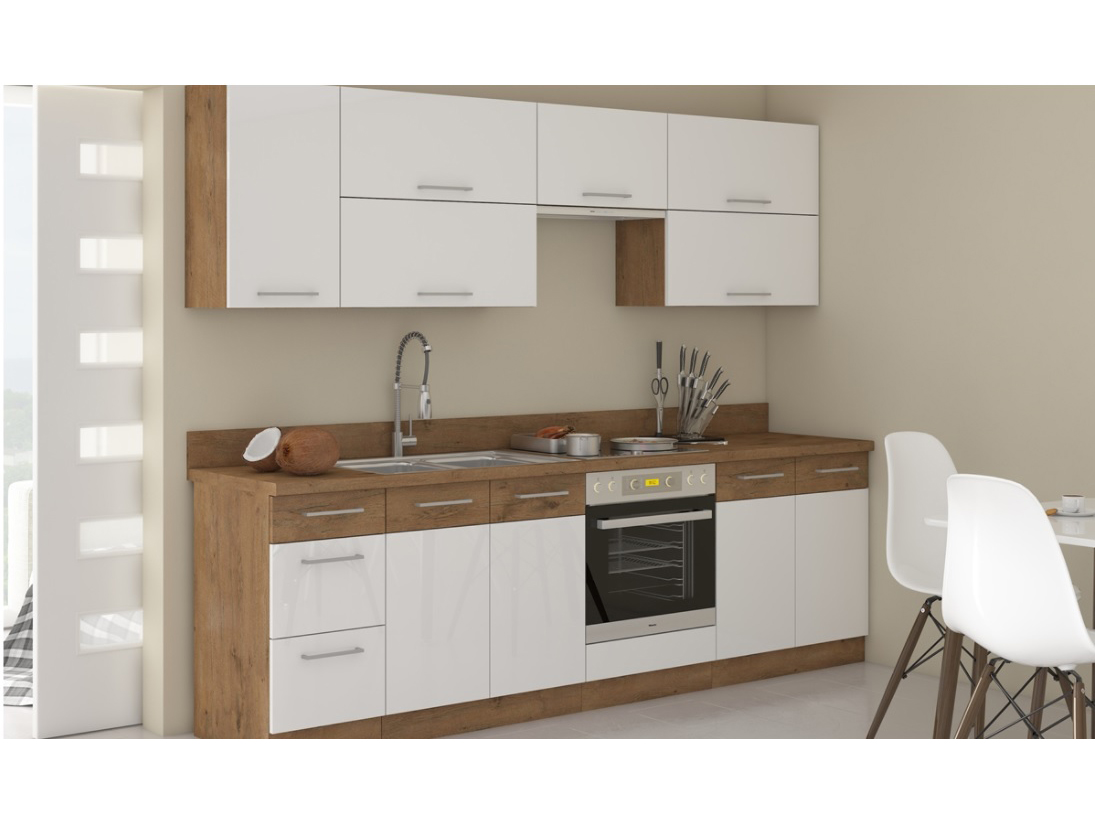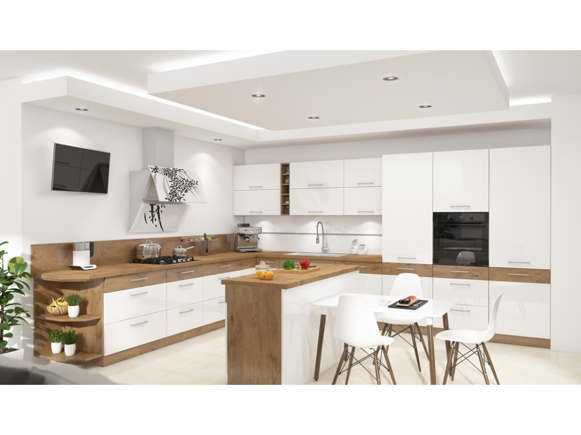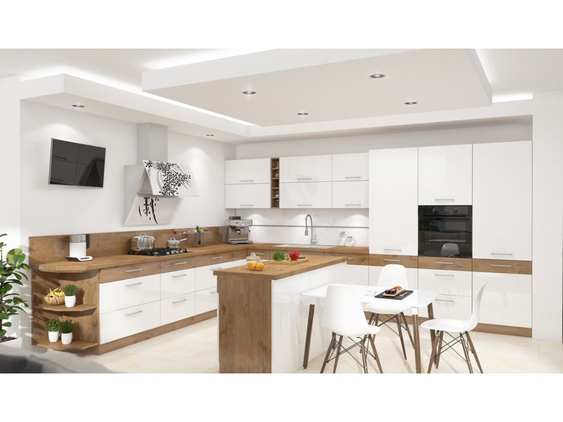 Staňte se pro tuto chvíli architektem a designér vlastní kuchyně. Nabízíme Vám směs designových skříněk v barvě bílá, šedá a bordó v kombinaci dubu Lancelot. Přáli jste si mít troubu v úrovni učí, nebo ji máte rádi v dole. Přáli jste si skříňky s výklopnými dvířky nebo klasicky doprava či doleva. Výběr je na vás a na vaší fantazii.