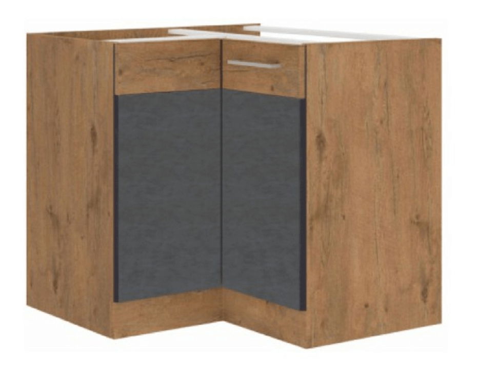 Dolní rohová kuchyňská skříňka 90x90 DN 1F BB Velaga (šedá matná + dub lancelot)