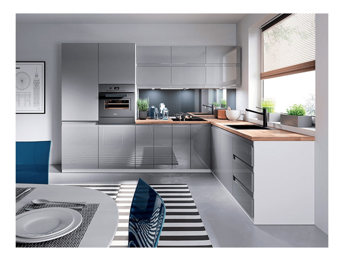 Dolní rohová kuchyňská skříňka D90N Aurellia (bílá + lesk šedý)