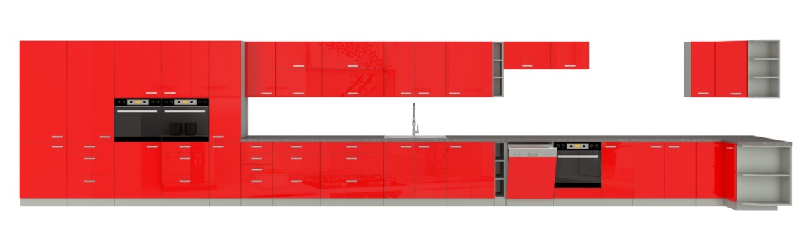 Utvořte elegantní celistvost kuchyňské linky pomocí ochranných dvířek na vestavnou myčku. Dvířka z kuchynského sektorového systému v moderním style.
