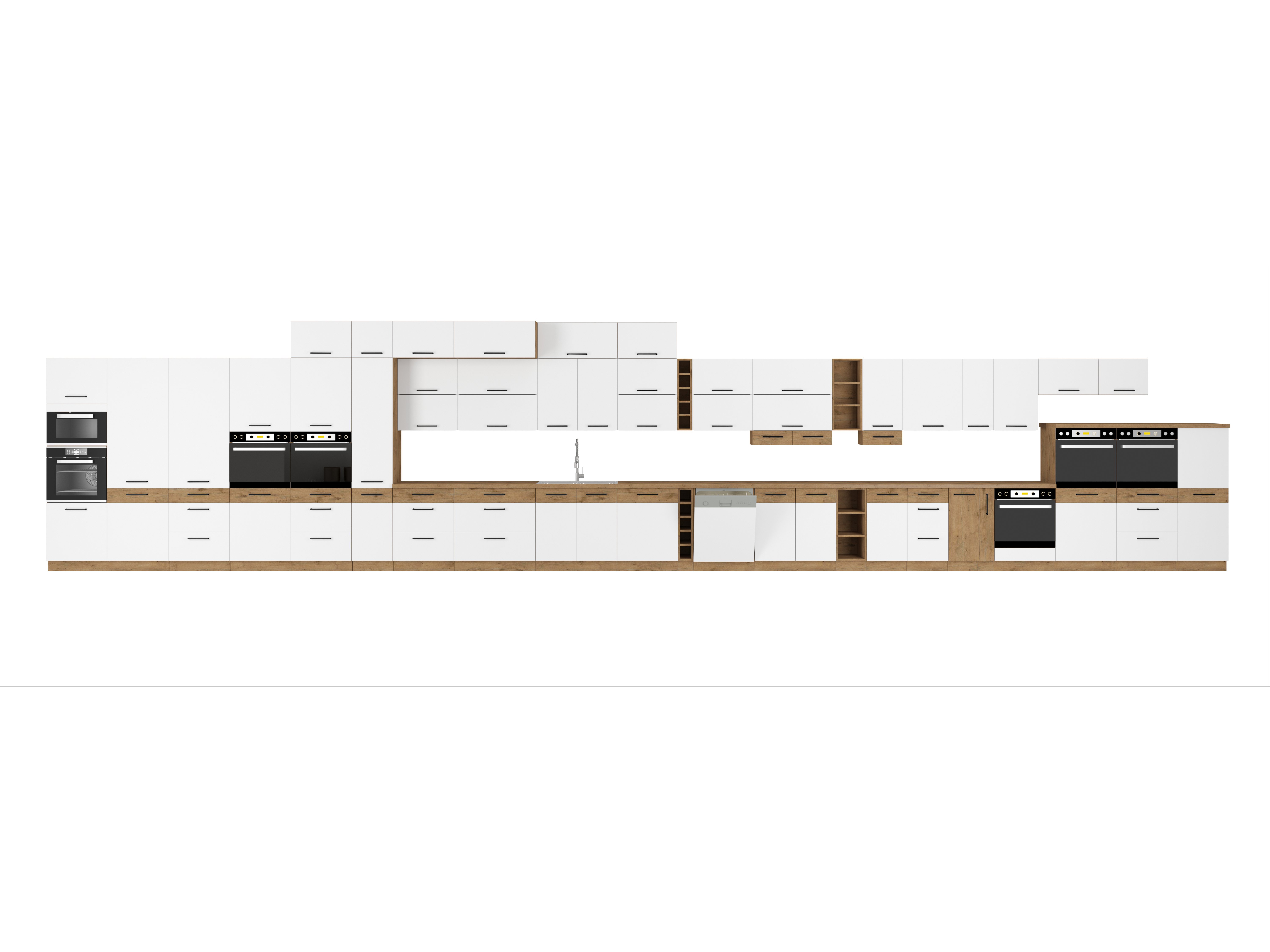 Staňte se pro tuto chvíli architektem a designér vlastní kuchyně. Nabízíme Vám směs designových skříněk v barvě bílá, šedá a bordó v kombinaci dubu Lancelot. Přáli jste si mít troubu v úrovni učí, nebo ji máte rádi v dole. Přáli jste si skříňky s výklopnými dvířky nebo klasicky doprava či doleva. Výběr je na vás a na vaší fantazii.