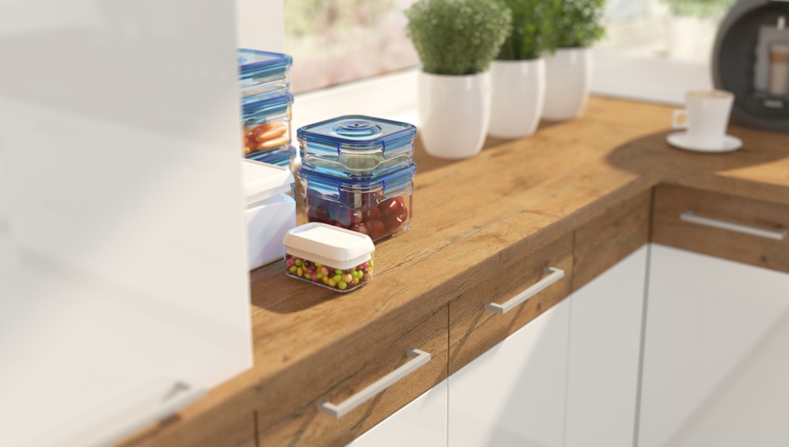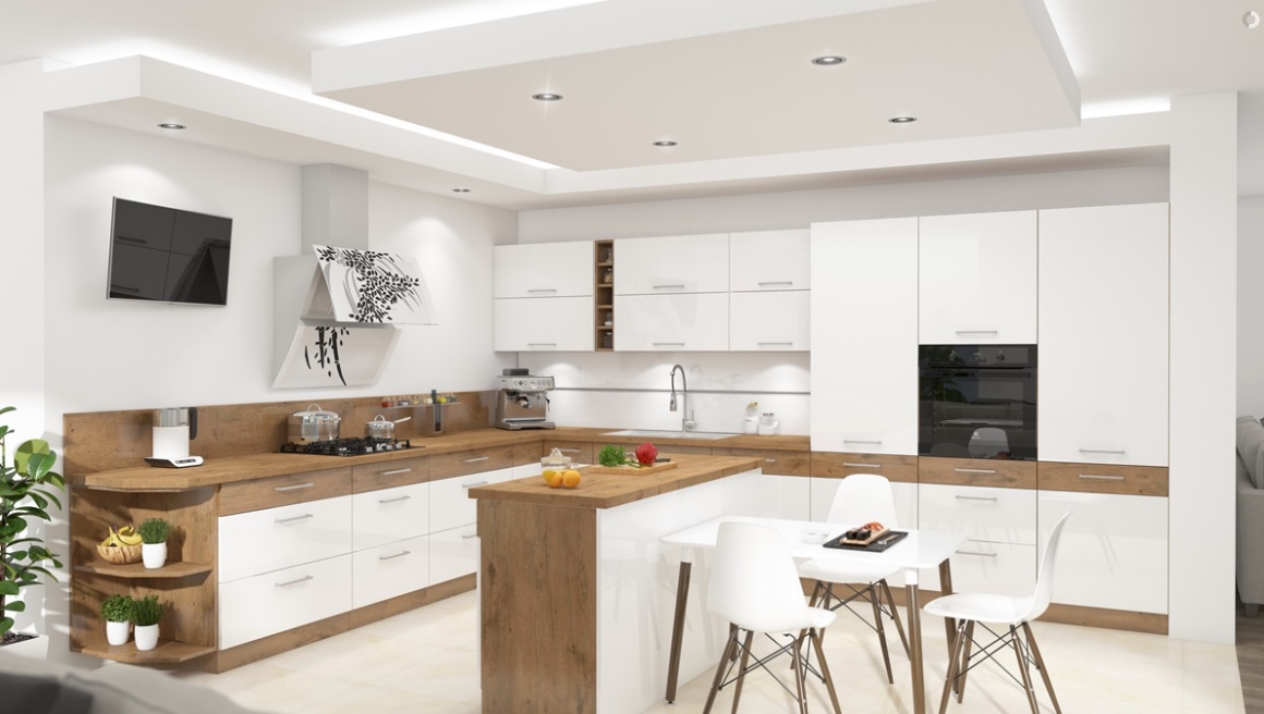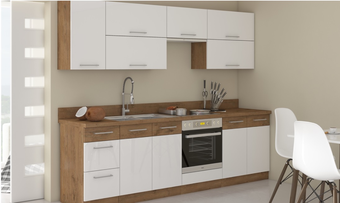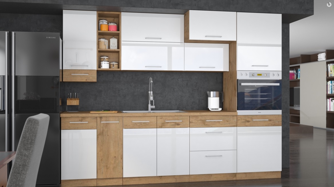 Staňte se pro tuto chvíli architektem a designér vlastní kuchyně. Nabízíme Vám směs designových skříněk v barvě bílá, šedá a bordó v kombinaci dubu Lancelot. Přáli jste si mít troubu v úrovni učí, nebo ji máte rádi v dole. Přáli jste si skříňky s výklopnými dvířky nebo klasicky doprava či doleva. Výběr je na vás a na vaší fantazii.