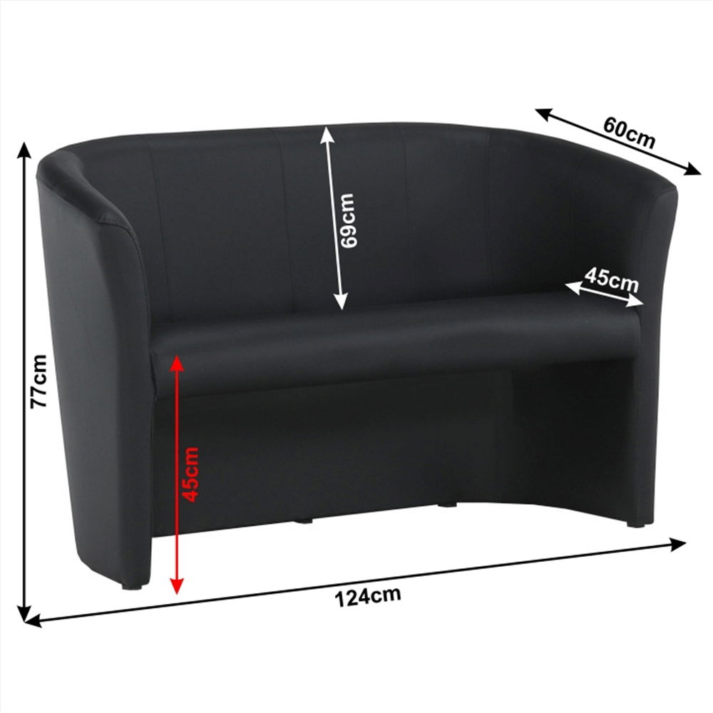 Dvojkřeslo Cubali Eko černá je moderní a elegantní křeslo, které si najde své místo v kavárnách, kancelářích nebo obývacích pokojích. Je čalouněno černou ekokůží, která má vysokou odolnost vůči oděru. Dvojkřeslo má nosnost až 200 kg a jeho rozměry jsou 124x60x77 cm. Kromě černé ekokůže si můžete vybrat i jiné barevné kombinace látky mikrofáze a ekokůže. Dodací doba pro individuální barevné provedení je 6-8 týdnů.