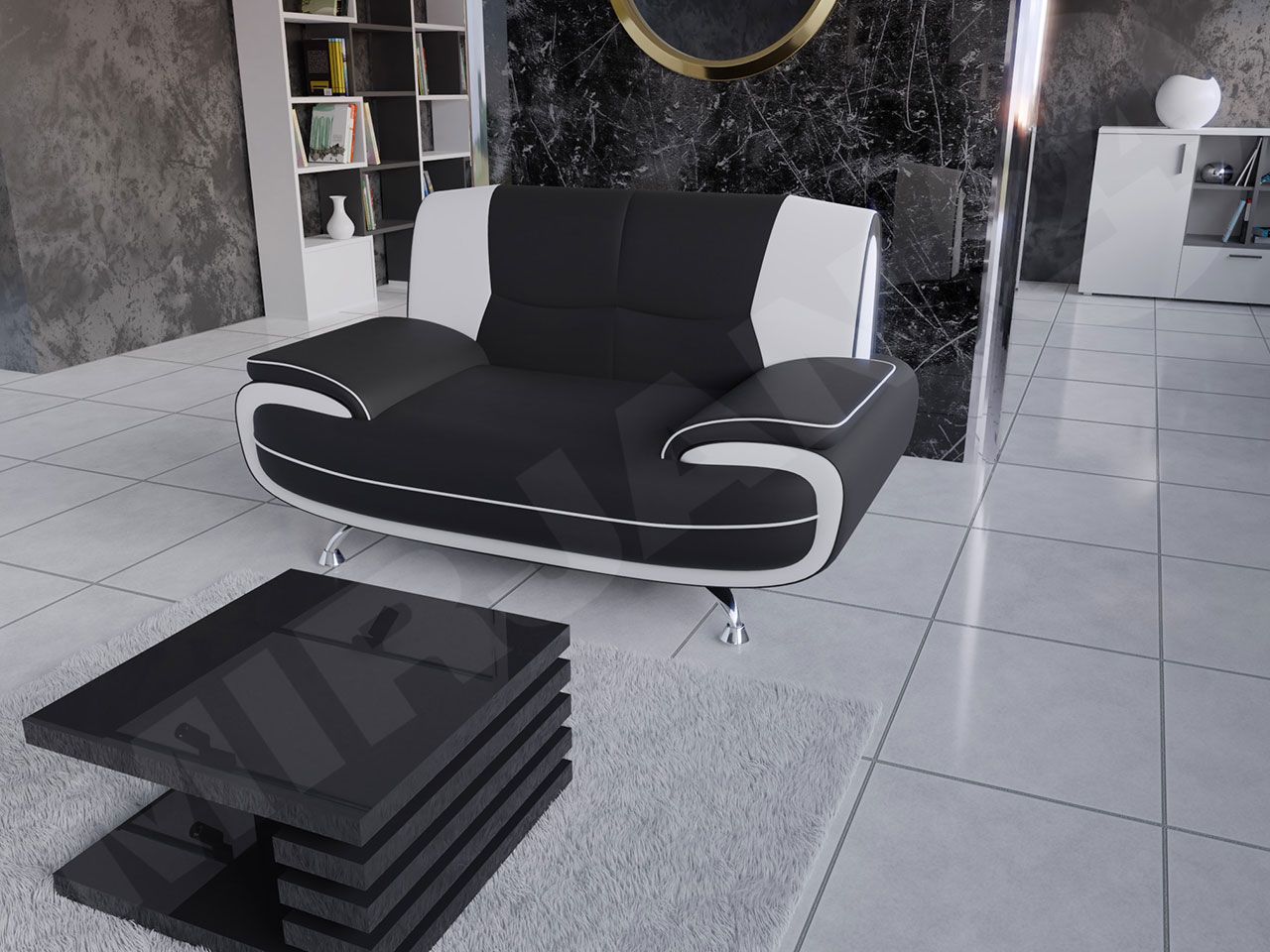 Pohovka, která je celočalouněná (potažena látkou i na zadní straně) Má napevno připevněné boční opěrky.