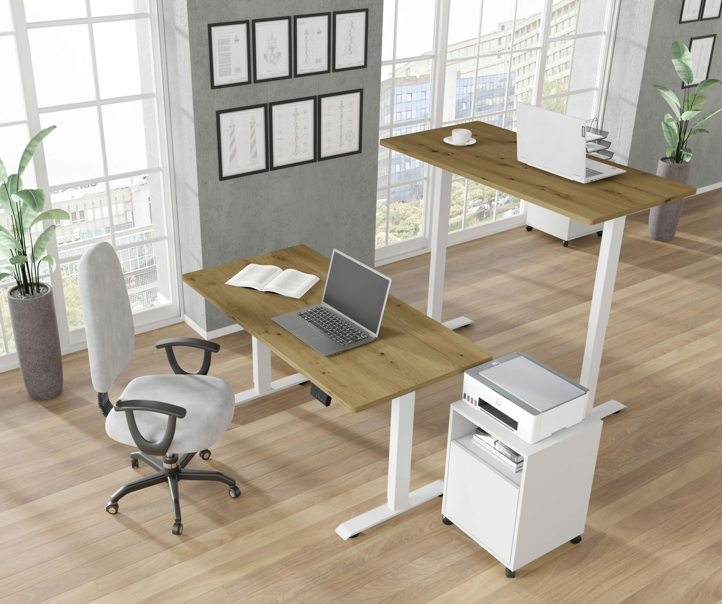 Elektrický PC stolek Motiva 140 (bílá + dub artisan)