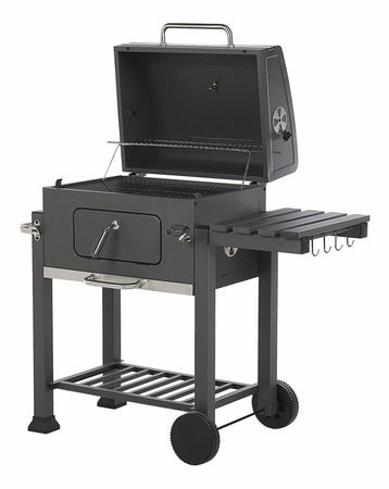 Tento gril na dřevěné uhlí přináší funkčnost pro každou BBQ párty. Tělo vyrobené z oceli s práškovou povrchovou úpravou je obtížné a poskytuje stabilitu. Díky integrovaným kolečkům jej jednoduše přemístíte z místa na místo. Gril je vybaven krytou varnou komorou se širokým roštem a topným roštem pro pomalé vaření nebo udržování jídla v teple. Víko má také teploměr, díky kterému můžete sledovat teplotu. Dvě police, jedna na boku a druhá ve spodní části, poskytují prostor pro všechny vaše nástroje a háčky umístěné na boční straně jsou ideální pro zavěšení ručníku. Gril je dodáván s odnímatelným popelníkem a zásuvkou na popel.