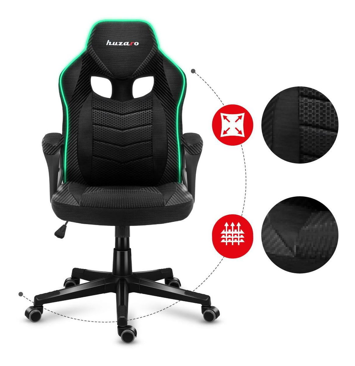 Malé velké křeslo s vysokým potenciálem. To je křeslo Fusion. V místech, kde se tělo dotýká křesla, je použit materiál ze silných nití, který je velmi odolný a pohodlný. Díky perforované struktuře materiál propouští mnohem více vzduchu. Pohodlné područky vyrobené z měkkého materiálu odolného vůči deformaci umožňují pohodlné opření rukou. Pryžová kolečka chrání podlahu před poškrábáním. Houpací mechanismus SoftFlex umožňuje plynulé houpání v křesle. Funkci lze uzamknout ve vertikální poloze. Chcete-li do svého pokoje zavést opravdu herní atmosféru, nic nebude fungovat tak dobře jako RGB LED osvětlení. Křeslo promění každý interiér a změní jeho charakter. Bezdrátové dálkové ovládání, které je součástí soupravy, vám umožňuje libovolný výběr barev osvětlení a speciálních světelných efektů. Ovládání je intuitivní a nebude dělat sebemenší problém ani dítěti.