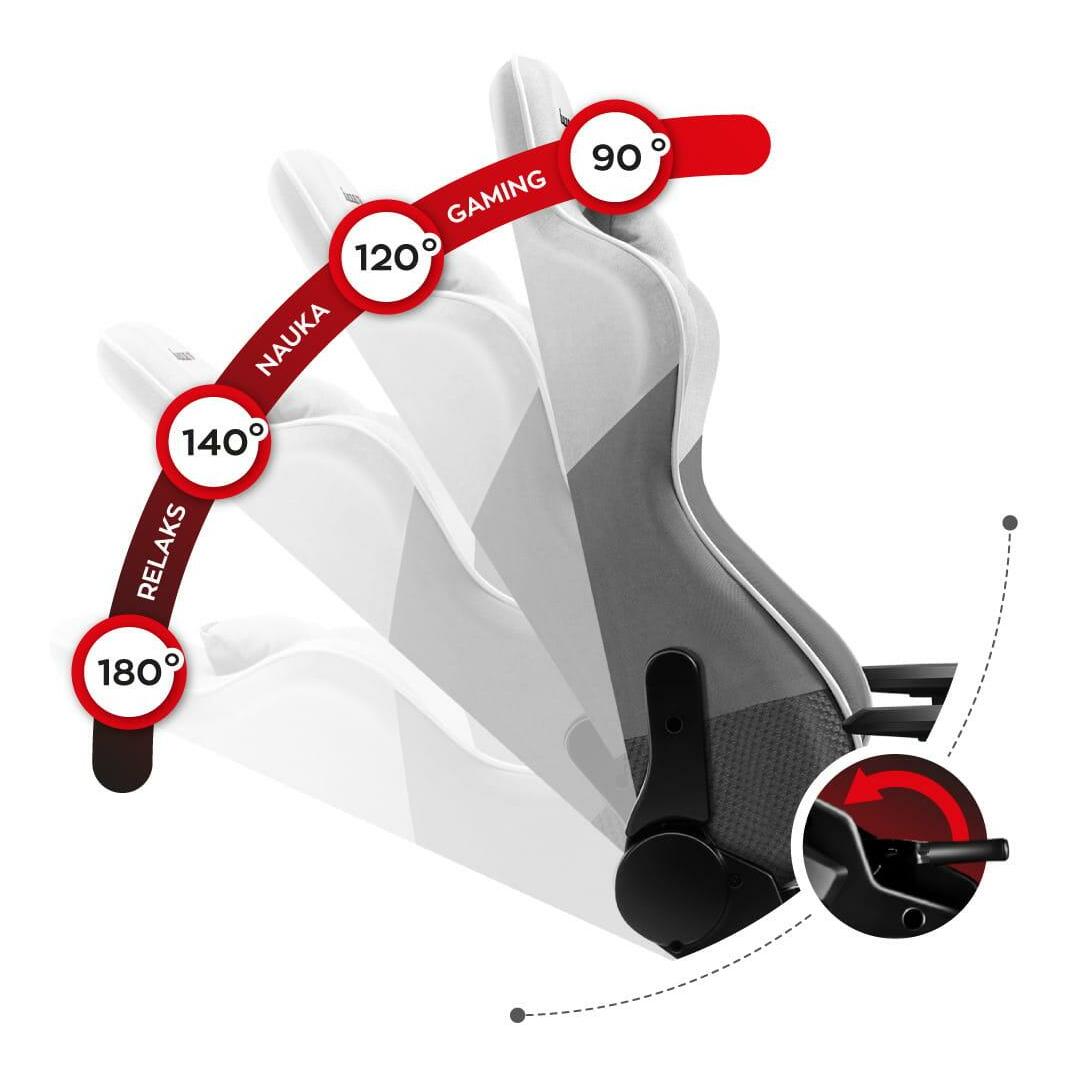 Herní křeslo bylo vytvořeno pro hráče a fanoušky e-sportu, kteří si cení pohodlí, dobrého stylu a chtějí posílit svou vášeň pomocí jedinečného vybavení. Odolná konstrukce a maximální zatížení 130 kg zajišťuje bezpečnost i při těch nejvzrušivějších hrách. Síťovina a pěna umožňují průchod vzduchu, díky čemuž herní křeslo zaručuje pohodlí v chladných i horkých dnech. Krční svalový polštář je funkční opěrka hlavy, která vám pomůže vyhnout se nepříjemné bolesti. Bederní polštář podporuje správné polohování spodní části páteře. Vaše záda zůstávají ve zdravé poloze během dlouhých herních sezení i při práci před obrazovkou počítače. Technologie Siderest zvyšuje pohodlí hráče při dlouhém sezení. Opěradlo sedáku lze naklonit o 90 stupňů do ležící polohy. Mechanismus Tilt Plus a houpací funkce Softlex zajišťují maximální komfort díky možnosti houpání. Ovládání jednou rukou pomocí páky umístěné pod sedadlem. Nastavitelné područky snižují zátěž na ramena a páteř. Pogumovaná kolečka nepoškrábají podlahu a umožňují plynulý pohyb židle. ovládání.