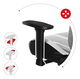 nastavení úhlu sklonu opěradla s aretací + houpání, nastavitelná výška sedáku, ergonomické, bederní polštář, nastavení loketní opěrky