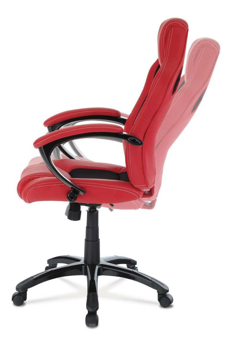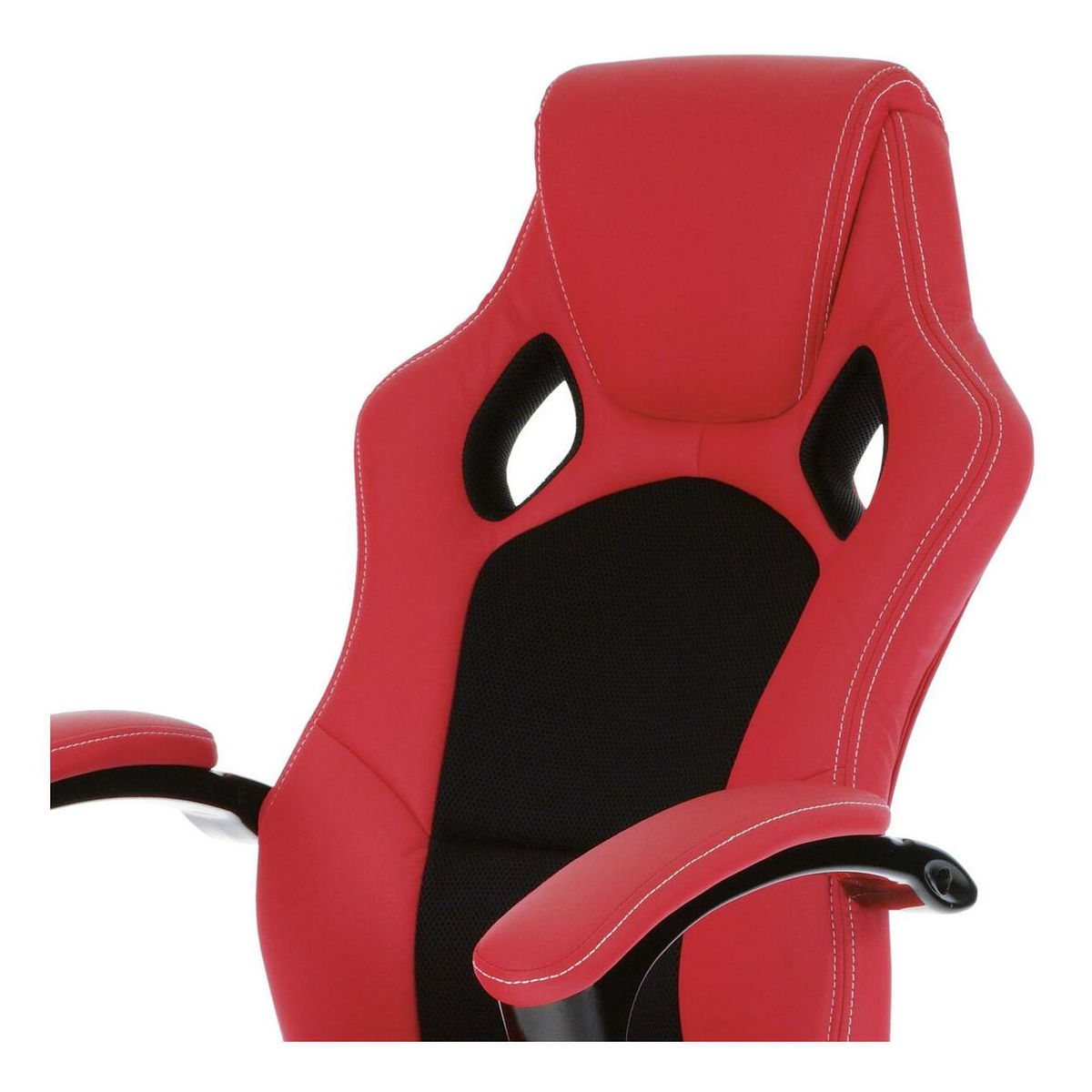 ZobrazitDalší z velmi populárních a luxusních modelů sportovních herních křesel v designu sedačky závodního vozu s výraznými zaoblenými liniemi. Má skvělé ergonomické rozvržení. Potah je v kombinaci červené ekokůže a černé látky MESH, čímž je zajištěna jeho dobrá prodyšnost. Sportovní bílé prošívání je samozřejmostí. Polstrování je z kvalitní PU pěny je zárukou pohodlného posezení při herních dnech i večerech. Ruce si můžete pohodlně položit na polstrované područky potažené černou ekokůží a samozřejmě s bílým obšitím. Jako bonus k tomuto křeslu jsou plastové prvky v černém vysokém lesku. Křeslo je vybaveno houpacím mechanismem. Síla houpání se reguluje plastovým šroubem pod sedákem. Výška sezení se upravuje páčkou na pravé straně přes kvalitní plynový píst. Masivní plastový kříž s černými protiskluzovými doplňky je osazen plastovými kolečky na koberec. Nosnost židle je 120 kg.