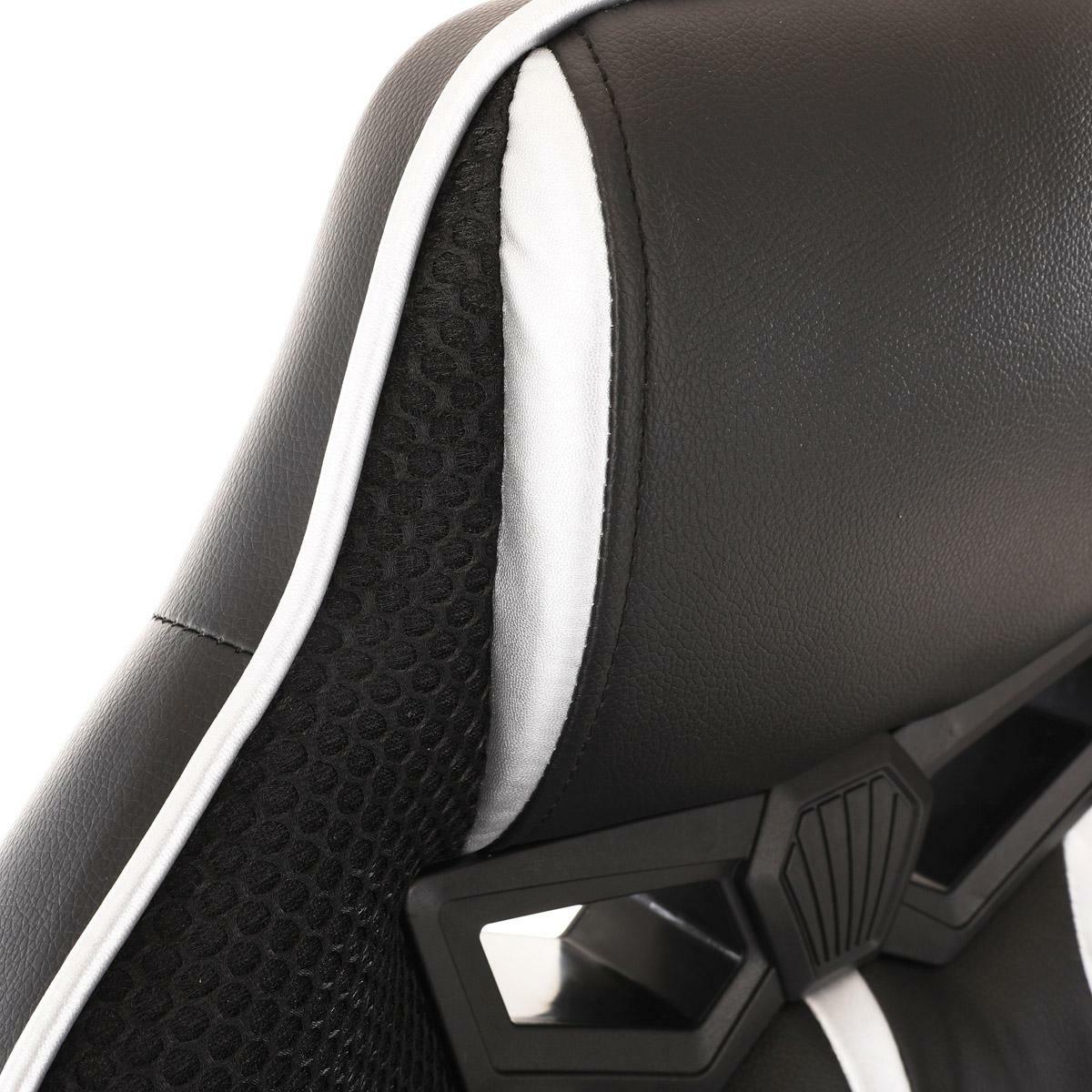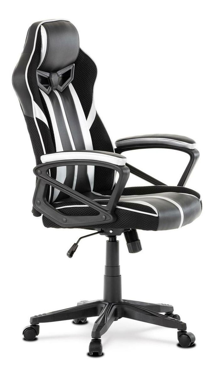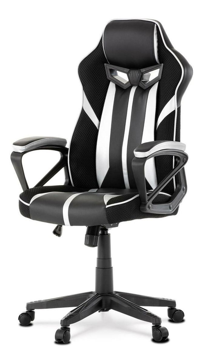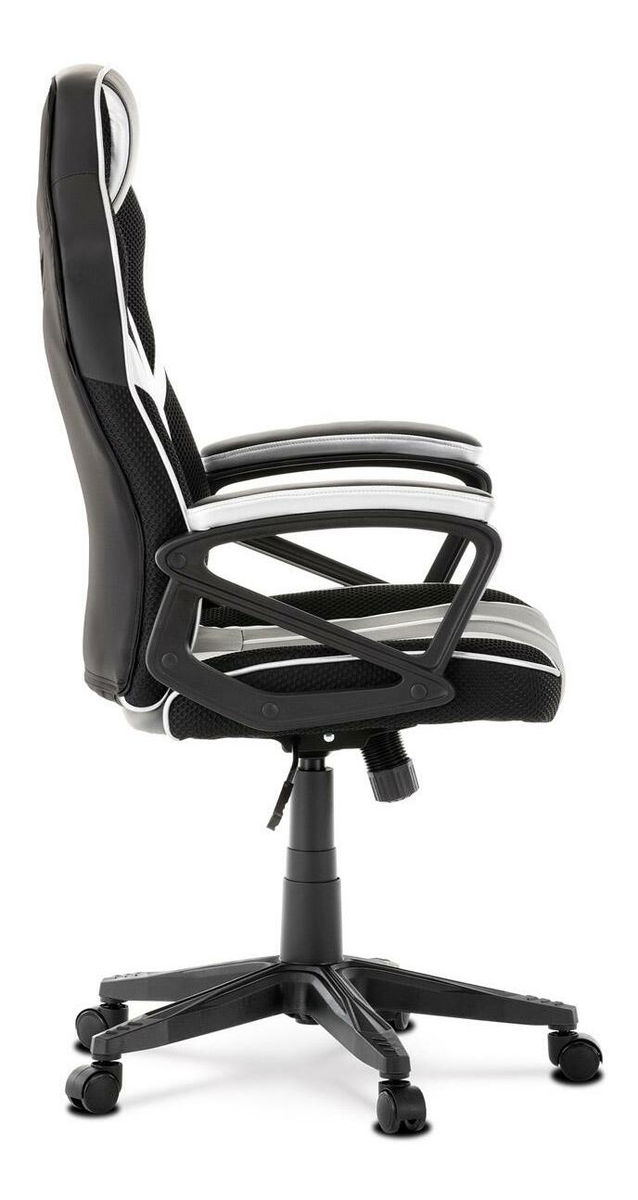 ZobrazitElegantní herní křeslo v designu sedačky závodního vozu v provedení Dark Racing Style se zaoblenými liniemi ve výrazném kontrastu s ostře řezanými rysy plastového lemování otvorů na „bezpečnostní pásy“ Uprostřed jsou spojeny výrazným prvkem ve stylizovaném tvaru mušle. Potah je kombinací černé látky MESH, doplněný většími prvky z černé a stříbrné ekokůže. Obvodové prošití je v černé barvě. straně přes kvalitní plynový píst. Znavené ruce z celodenního hraní či práce si můžete pohodlně položit na područky, na ložné ploše polstrované černou a na obvodové stříbrnou ekokůží Šířka područek je 36 cm a výška 3 cm. průměru 64 cm, což zajišťuje dokonalou stabilitu i při fyzicky náročnějších her. Na koncích ramen kříže jsou v černé barvě výrazné protiskluzové plochy. díky svým decentním tvarům a barevnosti nepřehlédnutelným prvkům.