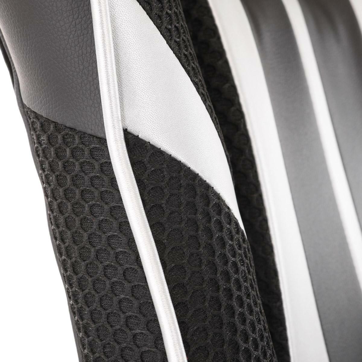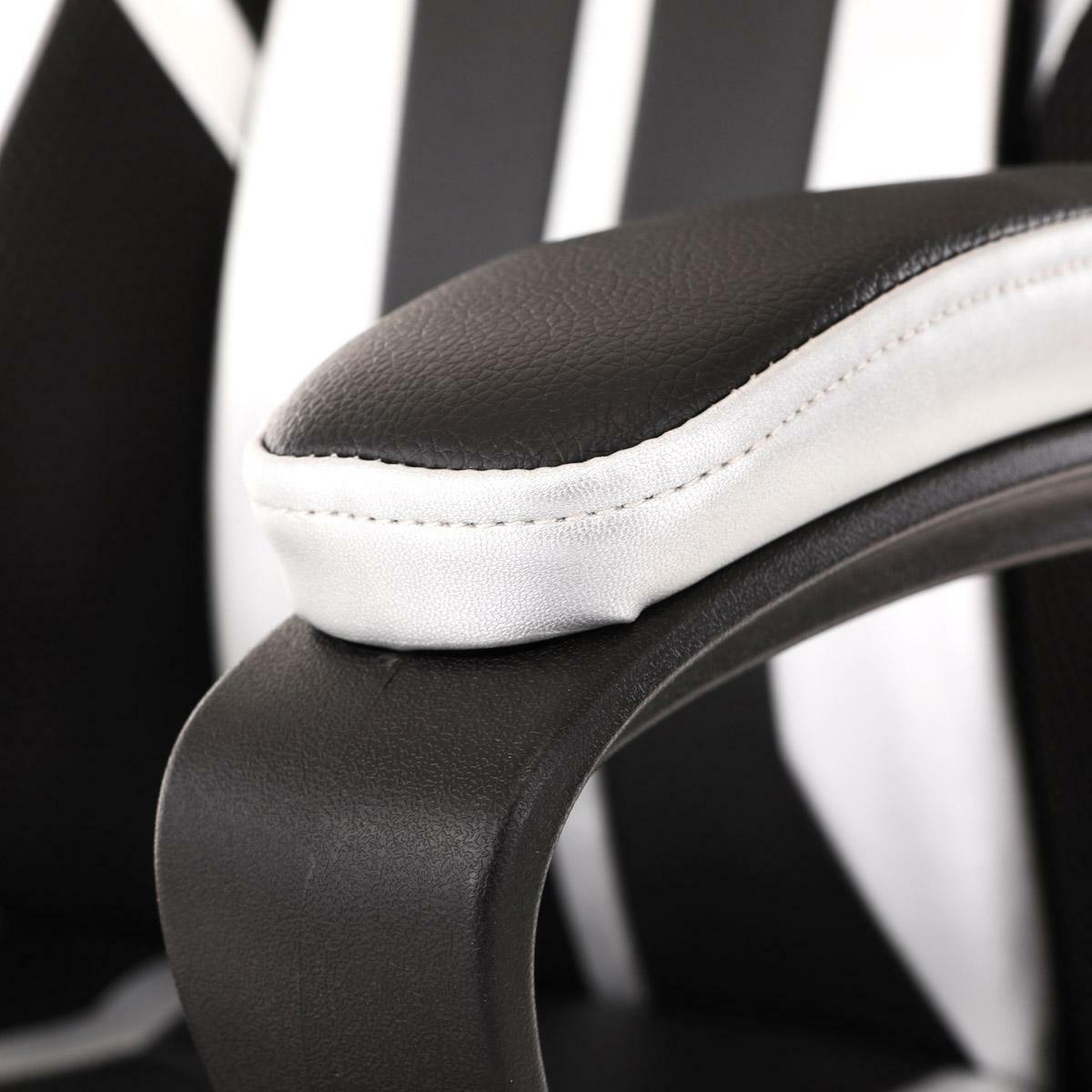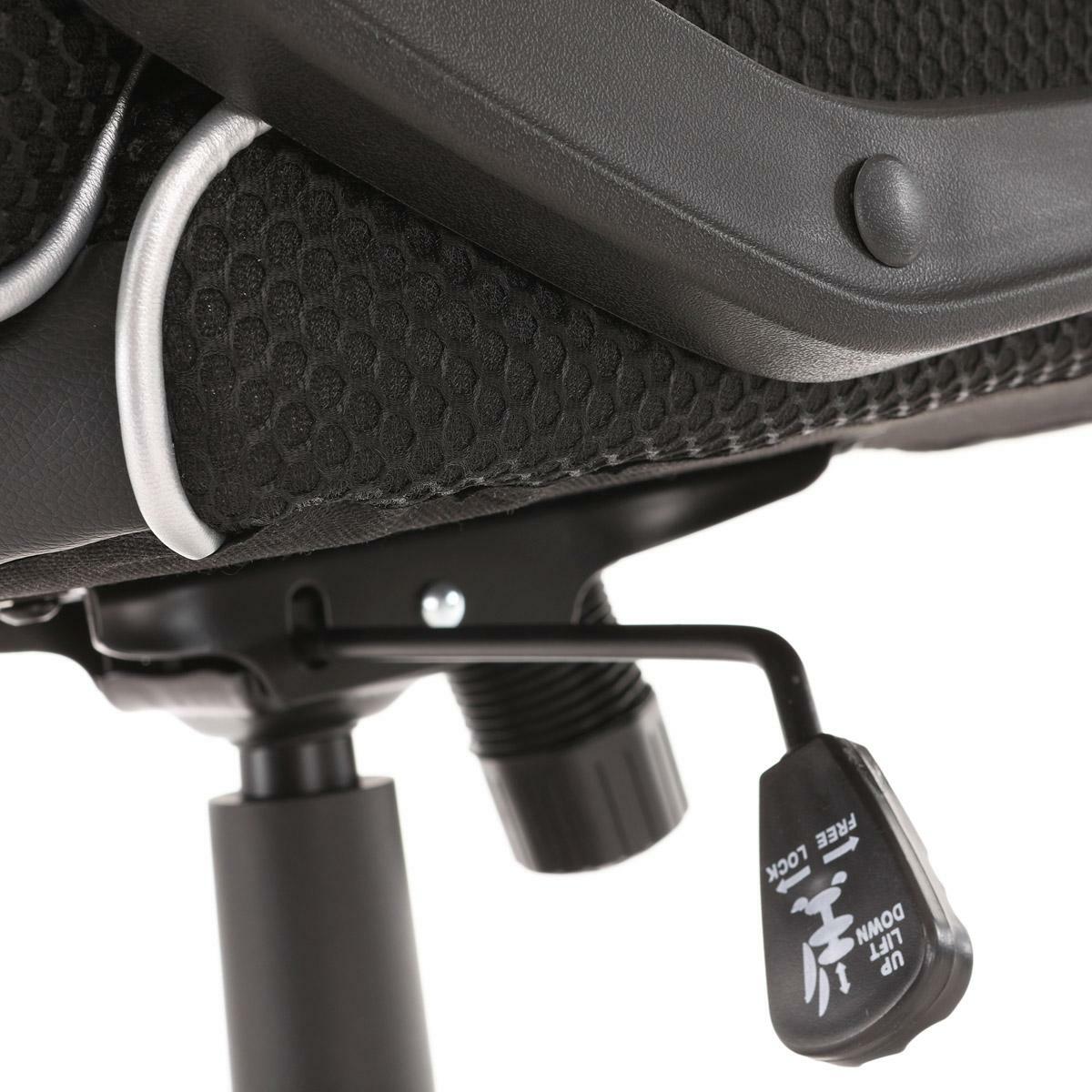 ZobrazitElegantní herní křeslo v designu sedačky závodního vozu v provedení Dark Racing Style se zaoblenými liniemi ve výrazném kontrastu s ostře řezanými rysy plastového lemování otvorů na „bezpečnostní pásy“ Uprostřed jsou spojeny výrazným prvkem ve stylizovaném tvaru mušle. Potah je kombinací černé látky MESH, doplněný většími prvky z černé a stříbrné ekokůže. Obvodové prošití je v černé barvě. straně přes kvalitní plynový píst. Znavené ruce z celodenního hraní či práce si můžete pohodlně položit na područky, na ložné ploše polstrované černou a na obvodové stříbrnou ekokůží Šířka područek je 36 cm a výška 3 cm. průměru 64 cm, což zajišťuje dokonalou stabilitu i při fyzicky náročnějších her. Na koncích ramen kříže jsou v černé barvě výrazné protiskluzové plochy. díky svým decentním tvarům a barevnosti nepřehlédnutelným prvkům.