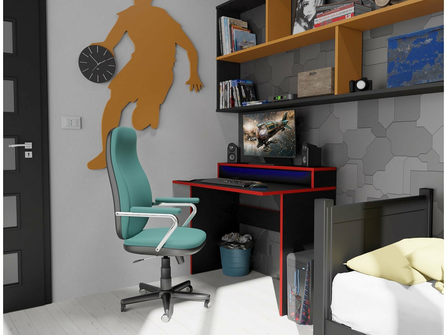 Herní pc stůl Adapt (černá + červená) (s RGB LED osvětlením)