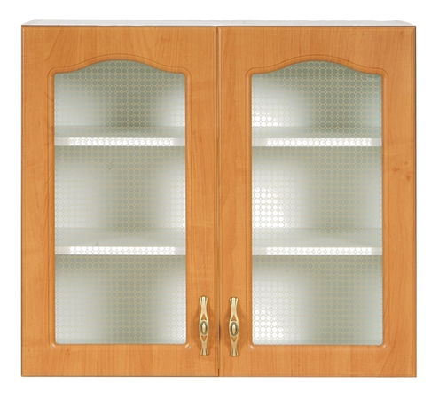Doplňková skříňka kuchyňské řady NIKA. Obrázek je pouze ilustrativní - barvu a tvar dvířek je třeba vybrat ze vzorníku. Skříňka je dvoudveřová, prosklená (sklo čiré nebo s dekorem plástky medu nebo mléčné - záleží na typu dvířek). Uvnitř za dvířky jsou dvě poličky. Skříňka je určena k zavěšení - kování k zavěšení je součástí balení. Součástí dvířek jsou plastové úchytky.