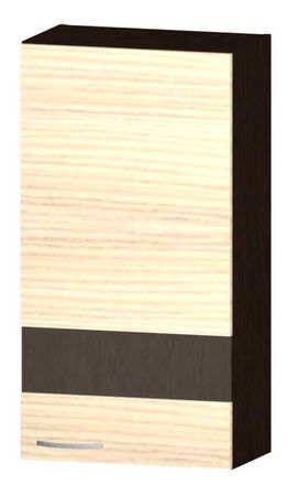 Horní kuchyňská skříňka s dvířky a proskleným pásem.