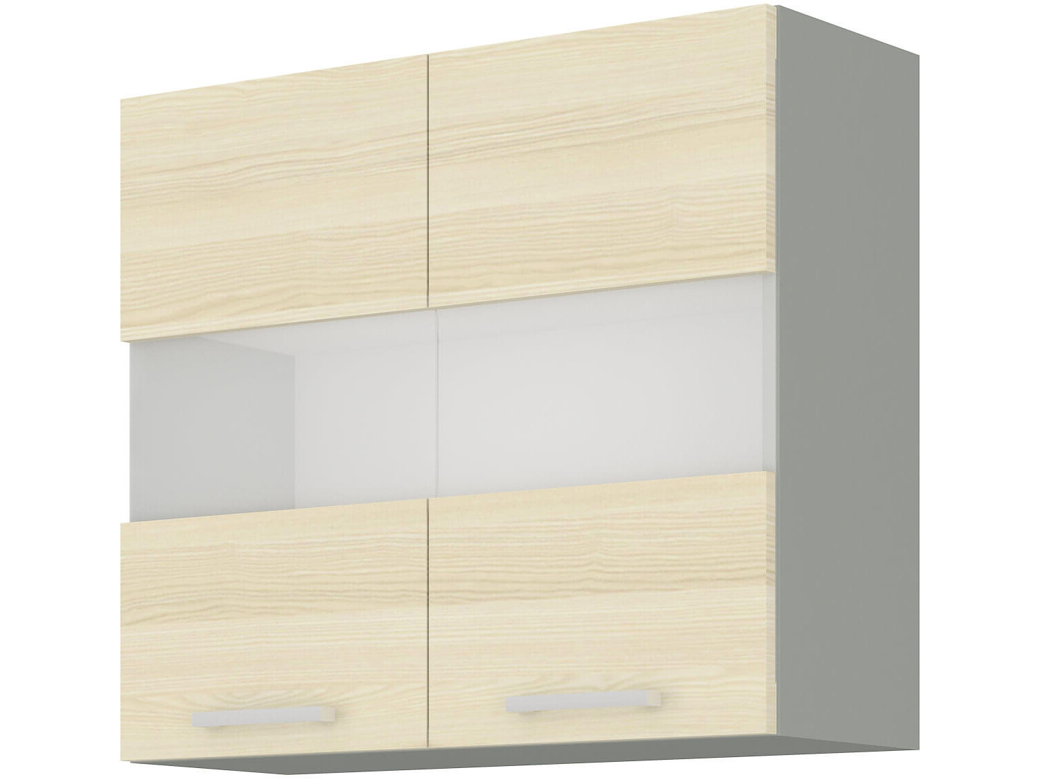 Horní skříňka se dvěma prosklenými dvířky z kuchyňského sektorového systému v moderním stylu. V nabídce naleznete i další varianty skříněk a regálů.