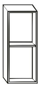 Horní kuchyňská skříňka nebo regál s jednou poličkou. Korpus skříňky je z DTD laminované v provedení bílá a dvířka jsou dub sonoma.
