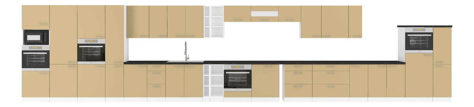 Jemná elegance, rovné linie a dostatek místa pro veškeré kuchyňské náčiní. Zapomeňte na nepořádek v kuchyni. Dolní i horní skříňky kuchyňské linky Lavera vám poskytnou mnoho úložného prostoru. Jednotlivé skříňky mají systém tichého zavírání dvířek a tichého dorazu zásuvek. K dispozici v několika barevných variantách s lesklým povrchem.
