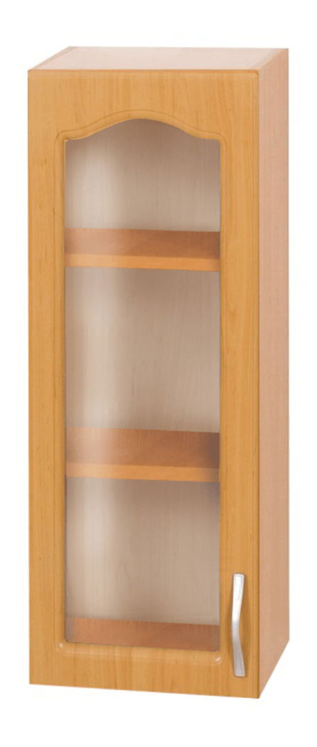 Horní kuchyňská skříňka Leite MDF klasik W40S/L (L) má jedny prosklená dvířka s matným sklem a uvnitř jsou 2 poličky. Korpus skříňky je z DTD laminované a dvířka jsou z MDF fóliované. Provedení skříňky je v olše. Skříňka má tloušťku materiálu 16 mm a je vhodná pro horní část kuchyňské linky. Ke skříňce lze doobjednat ozdobnou lištu a cena nezahrnuje pracovní desku.