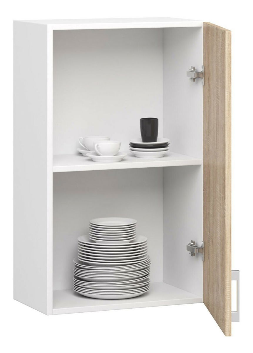 Horní kuchyňská skříňka Lula W50 720 (bílá + dub sonoma) je ideálním doplňkem pro vaši kuchyni. S výškou 72 cm, šířkou 50 cm a hloubkou 30.5 cm poskytuje dostatek úložného prostoru pro vaše kuchyňské potřeby. Kombinace bílé a dub sonoma barvy přidává elegantní a moderní vzhled do vašeho interiéru. Skříňka je vyrobena z kvalitních materiálů, což zaručuje její pevnost a odolnost vůči poškrábání a opotřebení. S jednoduchým montážním systémem je její instalace rychlá a snadná. Užijte si organizovaný a stylový prostor ve vaší kuchyni s touto horní kuchyňskou skříňkou Lula W50 720 (bílá + dub sonoma).
