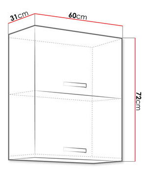 Závěsná skříňka je ideální volbou pro ty, kteří hledají pohodlí a styl. Rozměry: šířka: 60 cm, výška: 72 cm, hloubka: 31 cm Vyrobeno: korpus: dřevotřísková deska laminovaná - barva: šedá, dvířka: deska MDF ohranovaná PCV, kovové úchytky, systém tichého zavírání Záruční doba: 24 měsíců