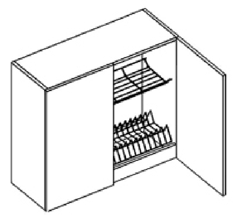 Horní kuchyňská skříňka s dvěma dvířky a úložným prostorem ve kterém se nachází praktický odkapávač.