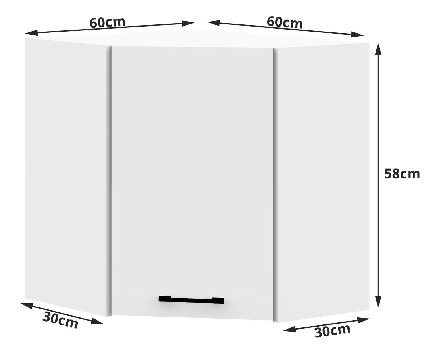 Horní rohová skříňka z kolekce Ozara je kvalitní výrobek, který se vyznačuje životností, solidním zpracováním a odolností proti poškození. Nábytek o rozměrech 60x60 centimetrů je navržen v univerzální bílé barvě, která se snadno čistí. Eleganci skříňky jistě dodají matné černé úchytky. Skříňku lze libovolně kombinovat s dalšími prvky zařízení z kolekce Ozara, například se stojící skříňkou S 90x90 cm – pro vytvoření kompletní sestavy nad danou skříňkou je však třeba dokoupit skříňky 2 W 30 cm. Díky nadčasovému vzhledu bude nábytek vypadat skvěle v každé kuchyni – bez ohledu na velikost místnosti nebo charakter jejího uspořádání.