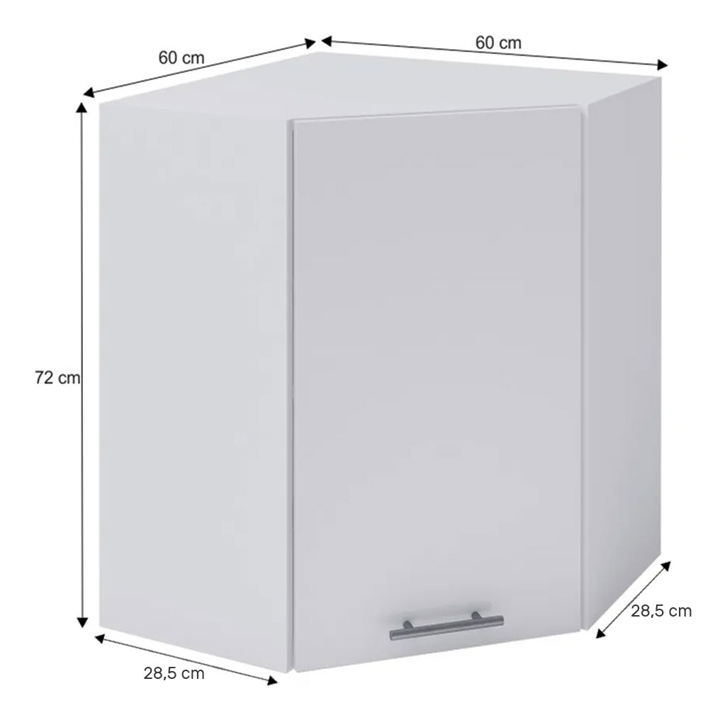 Horní kuchyňská skříňka Flor W-60N je rohová s dvířky otevírajícími se na moderním tichém systému zavírání. desky, dřezová skříňka se dodává bez pracovní desky, k ní se doporučuje dokoupit univerzální dřez. Skříňky mají předvrtané panty na pravé straně, montážní návod může být pouze ilustrační.