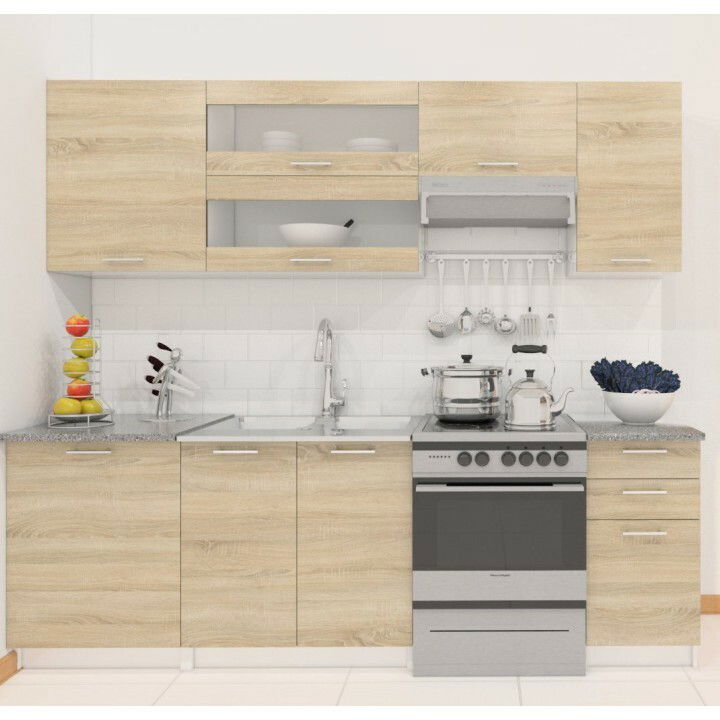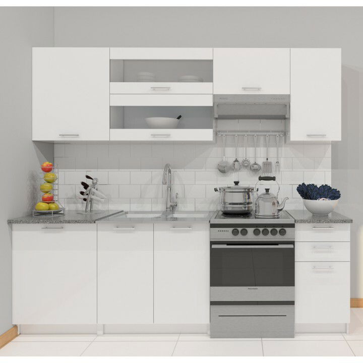 Kuchyňská skříňka je vyrobena z DTD laminované v bílé barvě dvířek a bílé barvě korpusu. Druhá barevná kombinace je korpus v bílé barvě a dvířek v provedení dub sonoma. Tloušťka pracovní desky je 28 mm. Spodní skříňky jsou dodávány bez pracovní desky, dřezová skříňka je dodávána bez pracovní desky, k ní doporučujeme dokoupit univerzální dřez z našeho obchodu.