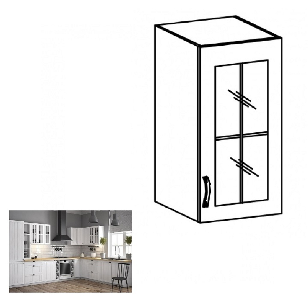 Horní kuchyňská skříňka se sklem G40S Provense (bílá + sosna andersen) (P)
