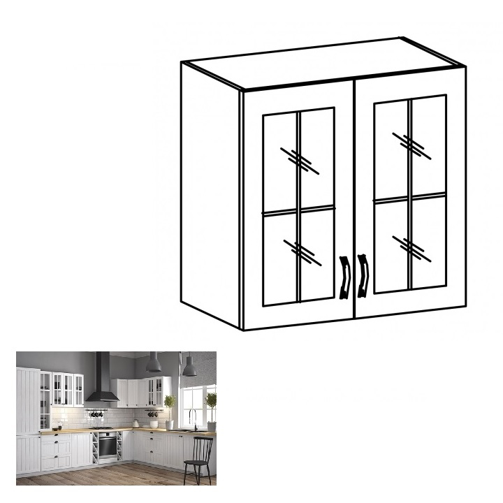 Horní kuchyňská skříňka se sklem G60S Provense (bílá + sosna andersen)