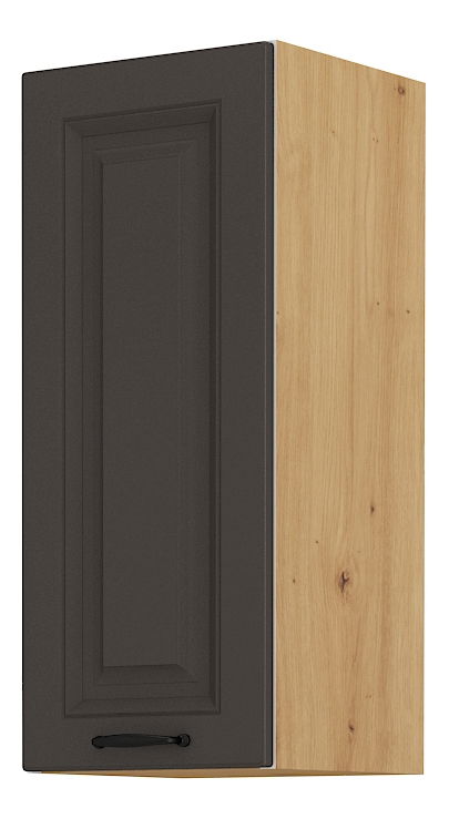 Horní kuchyňská skříňka Sheila 30 G 72 1F (dub artisan + grafit) má výšku 71,5 cm, šířku 30 cm a hloubku 31 cm. Je to moderní horní skříňka z kuchyňského sektorového systému, která se může zkombinovat s jinými variantami skříněk a regálů. Kuchyňská sestava Sheila umožňuje sestavit si rustikální kuchyni s moderními prvky na míru a dle vlastních představ. Skříňka je vyrobena z dřevotřísky laminované (16 mm) a MDF desky (16 mm) s grafitem, s kovovými úchyty as ABS hranami (1 mm). Skříňka obsahuje systém tichého zavírání a dvířka jsou univerzální, takže je lze namontovat vpravo i vlevo.