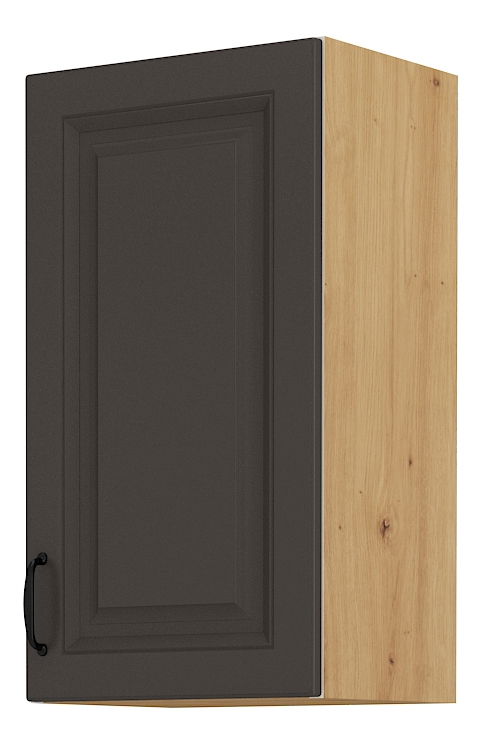 Horní kuchyňská skříňka Sheila 40 G 72 1F (dub artisan + grafit) je moderní kuchyňská skříňka ve stylovém designu o výšce 71,5 cm, šířce 40 cm a hloubce 31 cm. V nabídce jsou i další varianty skříněk a regálů z kuchyňského sektorového systému. Kuchyňská sestava Sheila je ideální pro ty, kteří sní o rustikální kuchyni s moderními prvky. Materiál z dřevotřískové laminované desky s grafickým MDF předním panelem a kovovými úchyty, s ABS hranami a systémem tichého zavírání. Dvířka kuchyňských skříněk jsou univerzální a lze je namontovat vpravo i vlevo.