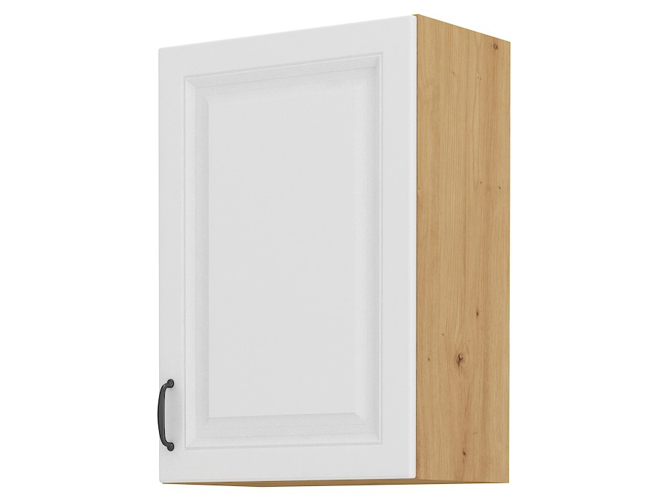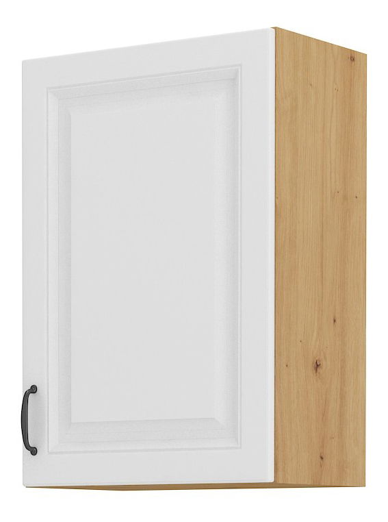 Horní kuchyňská skříňka Sheila 50 G 72 1F je moderní skříňka ve stylu rustikální kuchyně s bílými MDF deskami a dubovým korpusem. Její výška je 71.5 cm, šířka 50 cm a hloubka 31 cm. Materiál skříňky je dřevotříska laminovaná a ABS hrany s kovovými úchyty. Obsahuje systém tichého zavírání a univerzální otevírání dvířek. Nabízí se v dalších variantách skříněk a regálů.