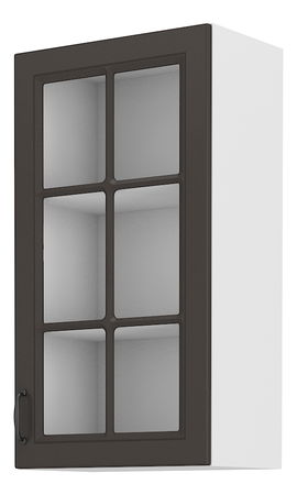 Tato horní kuchyňská skříňka s názvem Sheila GR 40 GS 90 1F (bílá + grafit) má výšku 90 cm, šířku 40 cm a hloubku 31 cm. Je vyrobena z kvalitní dřevotřískové laminované desky a MDF desky s výplní ze skla. a má kovové úchyty a systém tichého zavírání. Dvířka jsou univerzální a lze je namontovat vpravo i vlevo. Tato skříňka je součástí kuchyňského sektorového systému Sheila, který nabízí i další varianty skříněk a regálů.