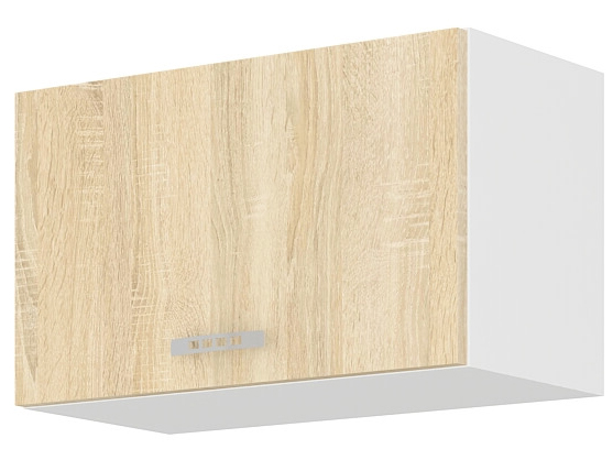 Horní kuchyňská skříňka Sylrona 60 OK 40 (dub sonoma) s výklopnými dvířky je moderním doplňkem kuchyně. V nabídce najdete i další varianty skříněk a regálů, které si můžete zvolit dle potřeby. dubu Lefkas, dubu Sonoma a olše. dřevotřískové laminované desky s melaminovými okraji a má plastové uchycení. Vnitřek skříně je v barvě bílá.
