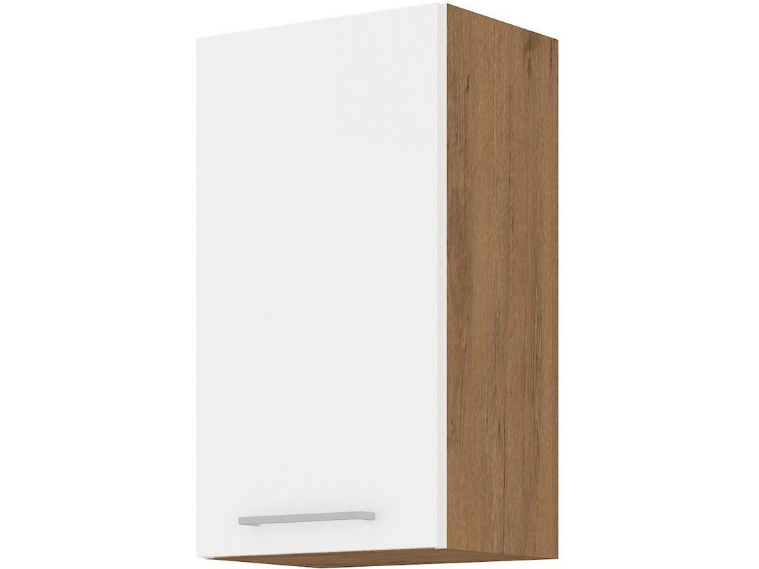 Horní kuchyňská skříňka Virion 45 G 72 1F je moderní horní skříňka s výklopnými dvířky v kombinaci dubu Lancelot a bílé barvy. Je vyrobena z dřevotřískové laminované desky a MDF s ABS hranami. Úchyty jsou plastové o velikosti 192 mm, ale můžete si vybrat kovové za příplatek. Dvířka jsou univerzální a lze je namontovat na levou i pravou stranu. Vnitřek skříně je v barvě bílá a produkt má vyvrtané otvory pro rukojeť. Nabízíme také další varianty skříněk a regálů v podobném stylu. Staňte se architektem a designérem vlastní kuchyně s naší kuchyňskou sestavou.